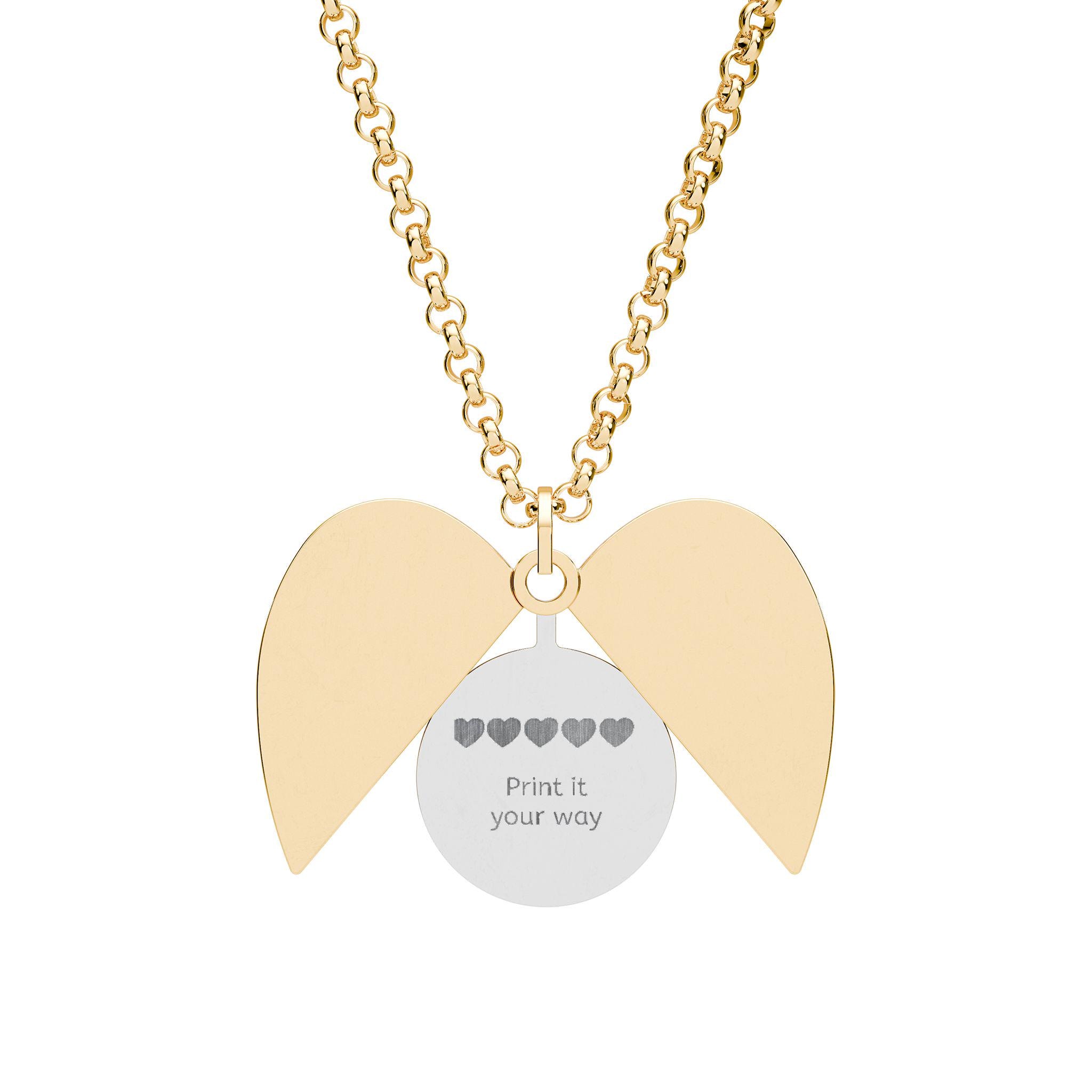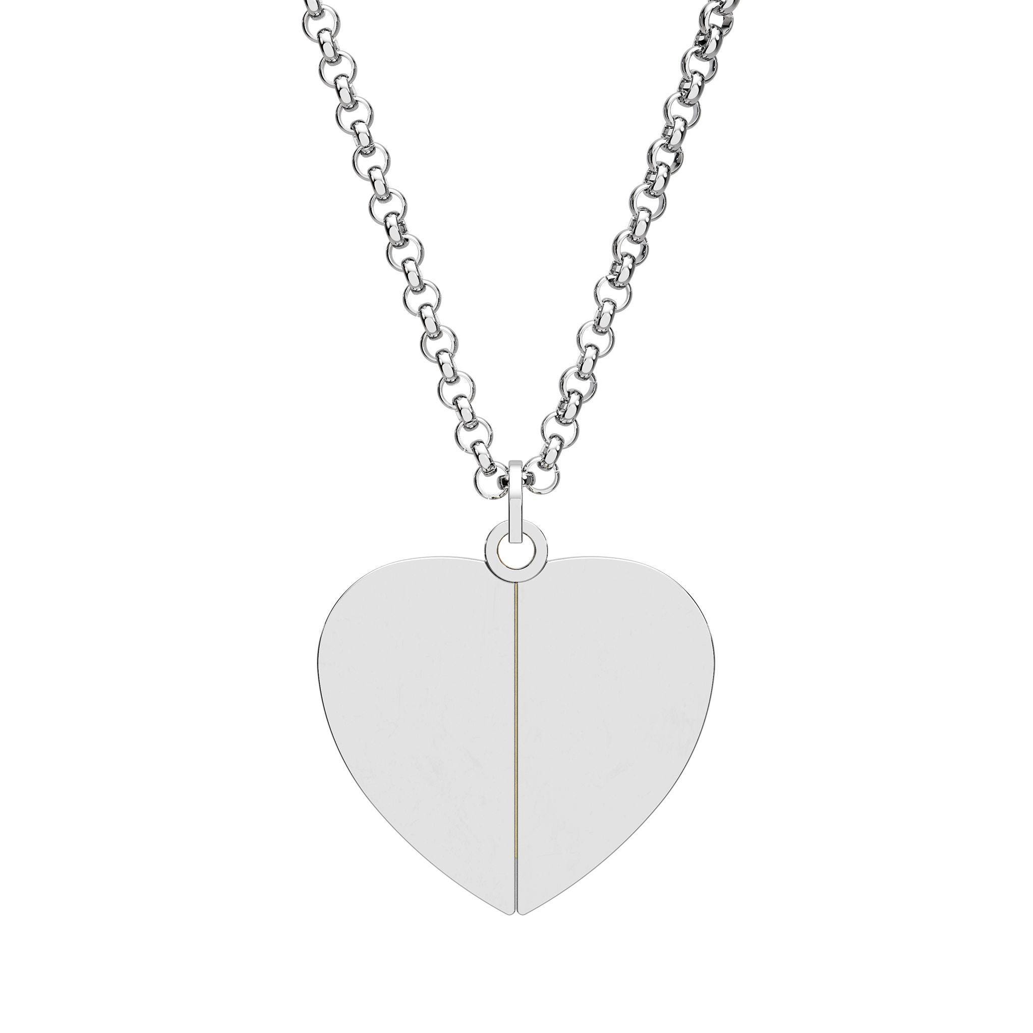 A finely crafted heart pendant that hides a small, engraved message inside — like a private note you can carry close to your chest. Polished 316L surgical stainless steel gives the piece a smooth, weighty feel while remaining hypoallergenic and durable. The heart opens to reveal a 18K gold PVD coated disc with a crisp, permanent engraving that resists fading. Lightweight on the neck with a 16" plus 2" extender, it sits comfortably for everyday wear and tucks under collars or dresses for quiet moments. The clean lines and subtle gold detail make this necklace feel intimate and modern — a discreet keepsake for someone who prefers meaningful jewelry with a minimalist edge.